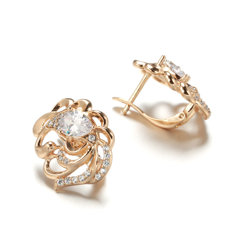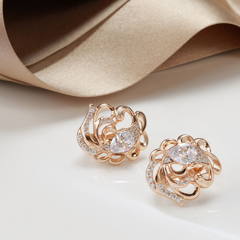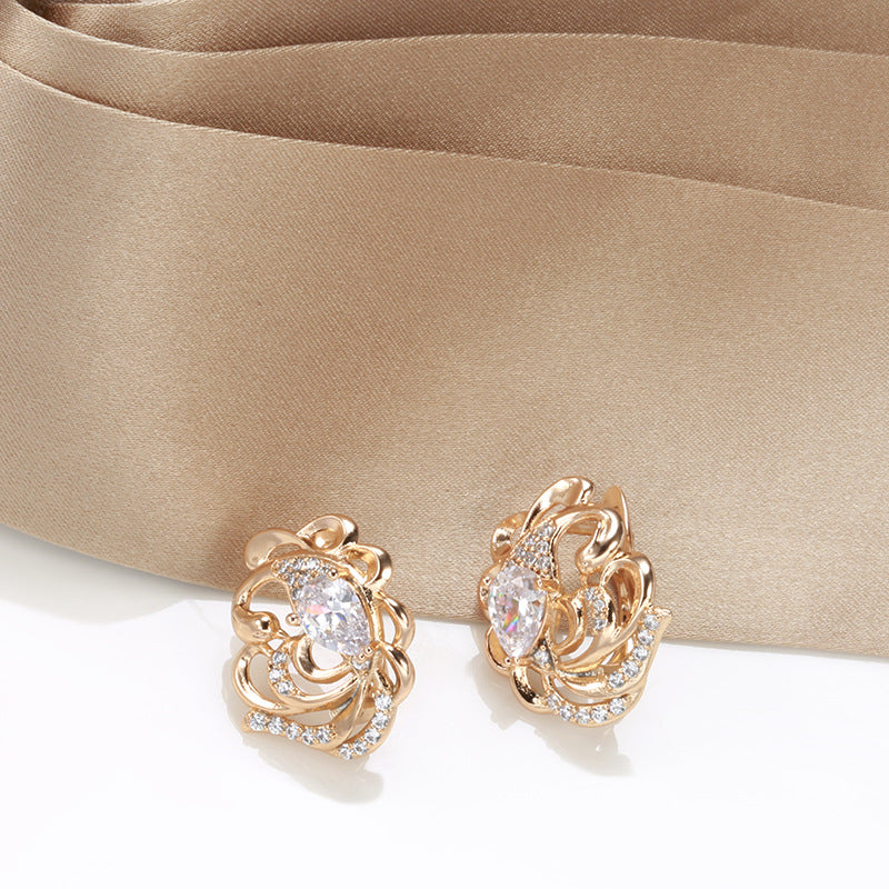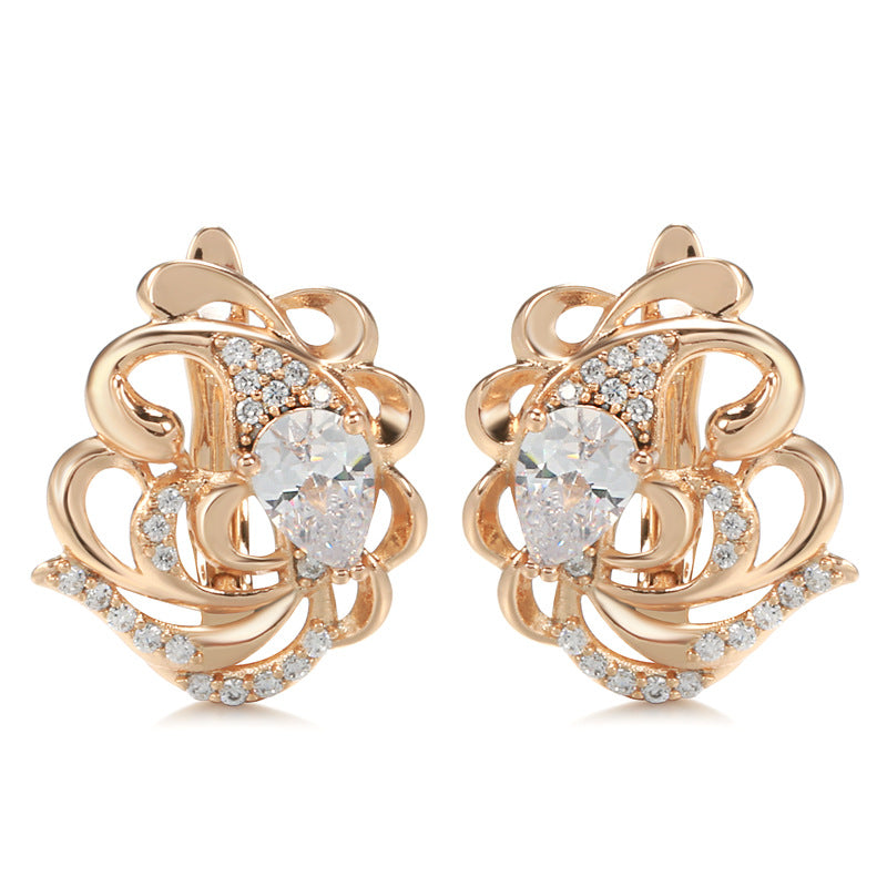 Rose Gold Carved Water Drop Zircon Ear Clips