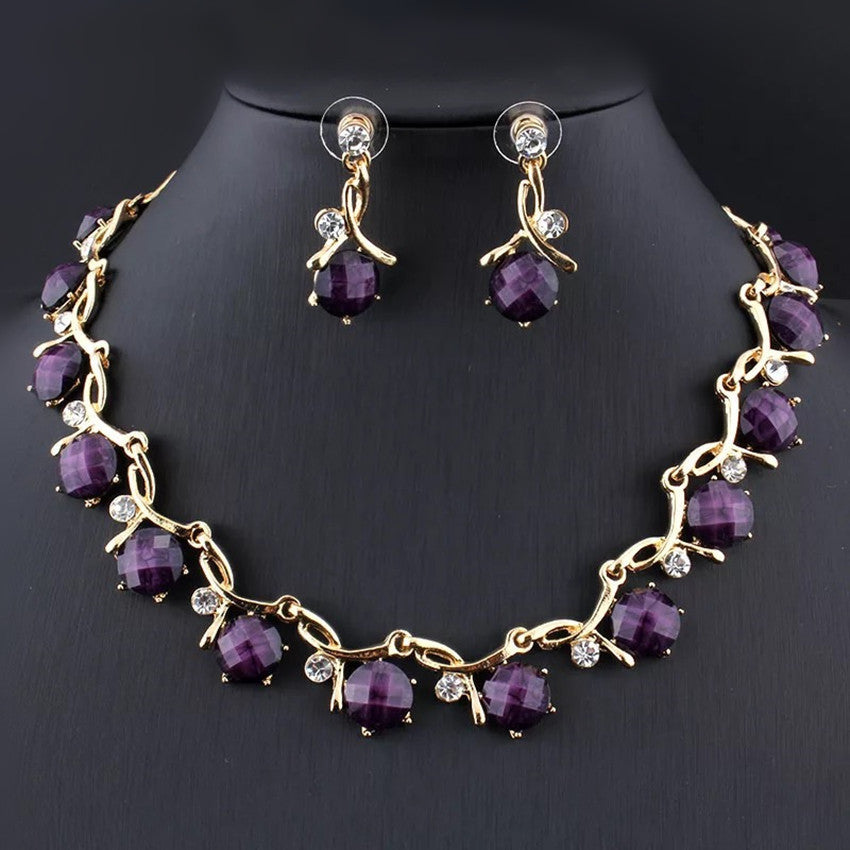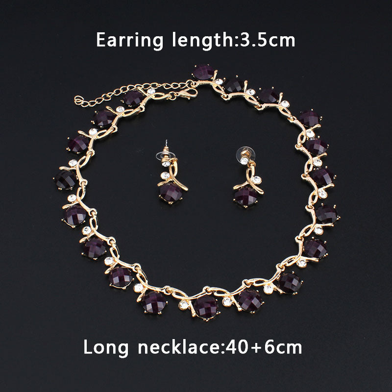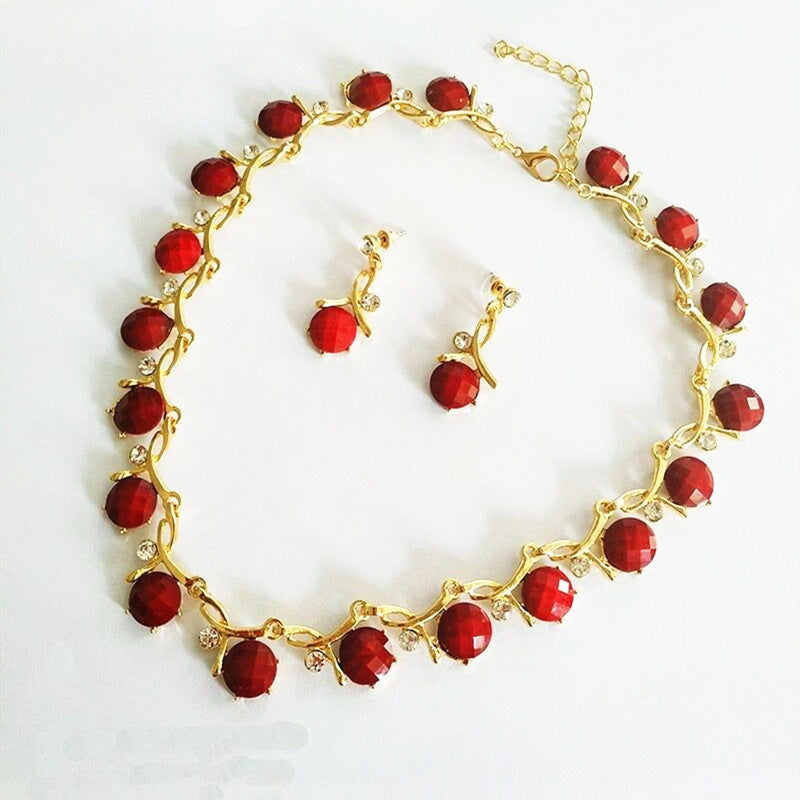 This colorful floral resin jewelry set brings playful elegance to your wardrobe. Featuring a vibrant necklace and matching earrings, the design is inspired by blooming flowers and adorned with sparkling artificial gemstones in rich tones of red, green, and purple. Each piece is crafted from durable alloy and finished with a water wave chain that lies smoothly against the skin. Perfect for festive occasions, seasonal wear, or adding a bright accent to a simple outfit, this set offers both charm and visual impact. Its lightweight feel makes it comfortable for all-day use, while the bold colors express a fun, confident style.